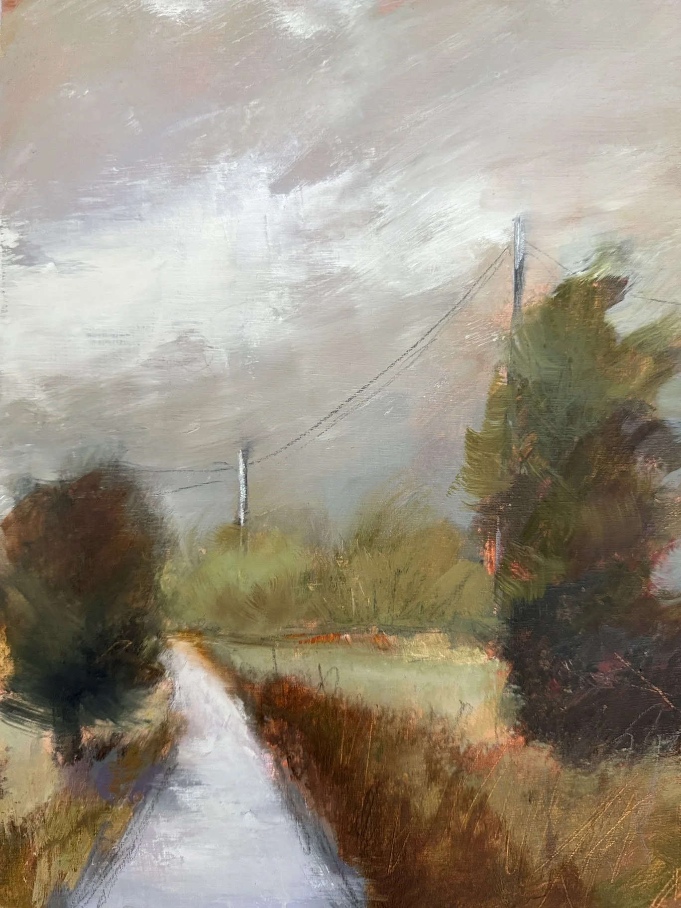 Painting panels can be provided with a pink/orange ground if you wish. Please let me know if you’d like one?